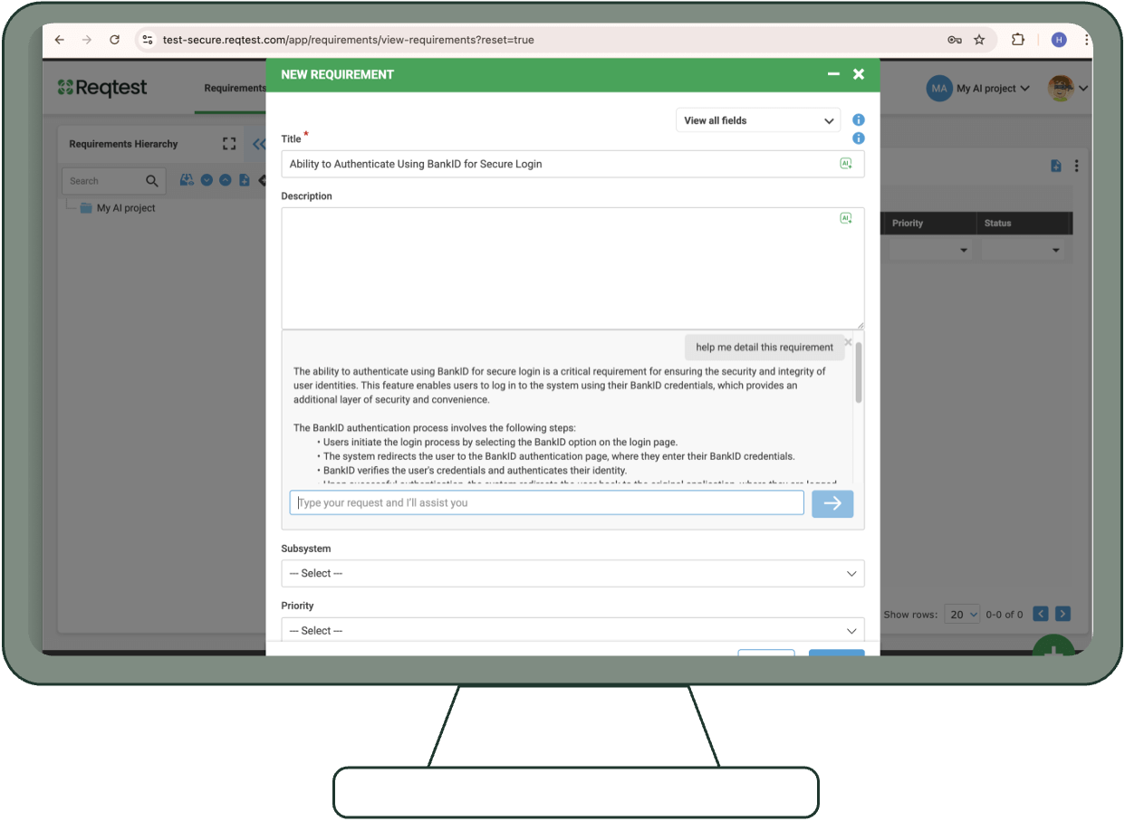Reqtest’s built-in AI functionality helps your organization write better requirements more effectively in your IT projects.