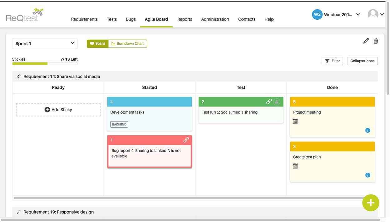 The Agile board can be used to improve collaboration with your remote team. It helps to remove the barriers of time and location. It will provide you anytime and anywhere access while working with a distributed team. You can collaborate with the customer through the Agile board for brainstorming as well. You can also use stickies on the Agile board for segregating the requirements.