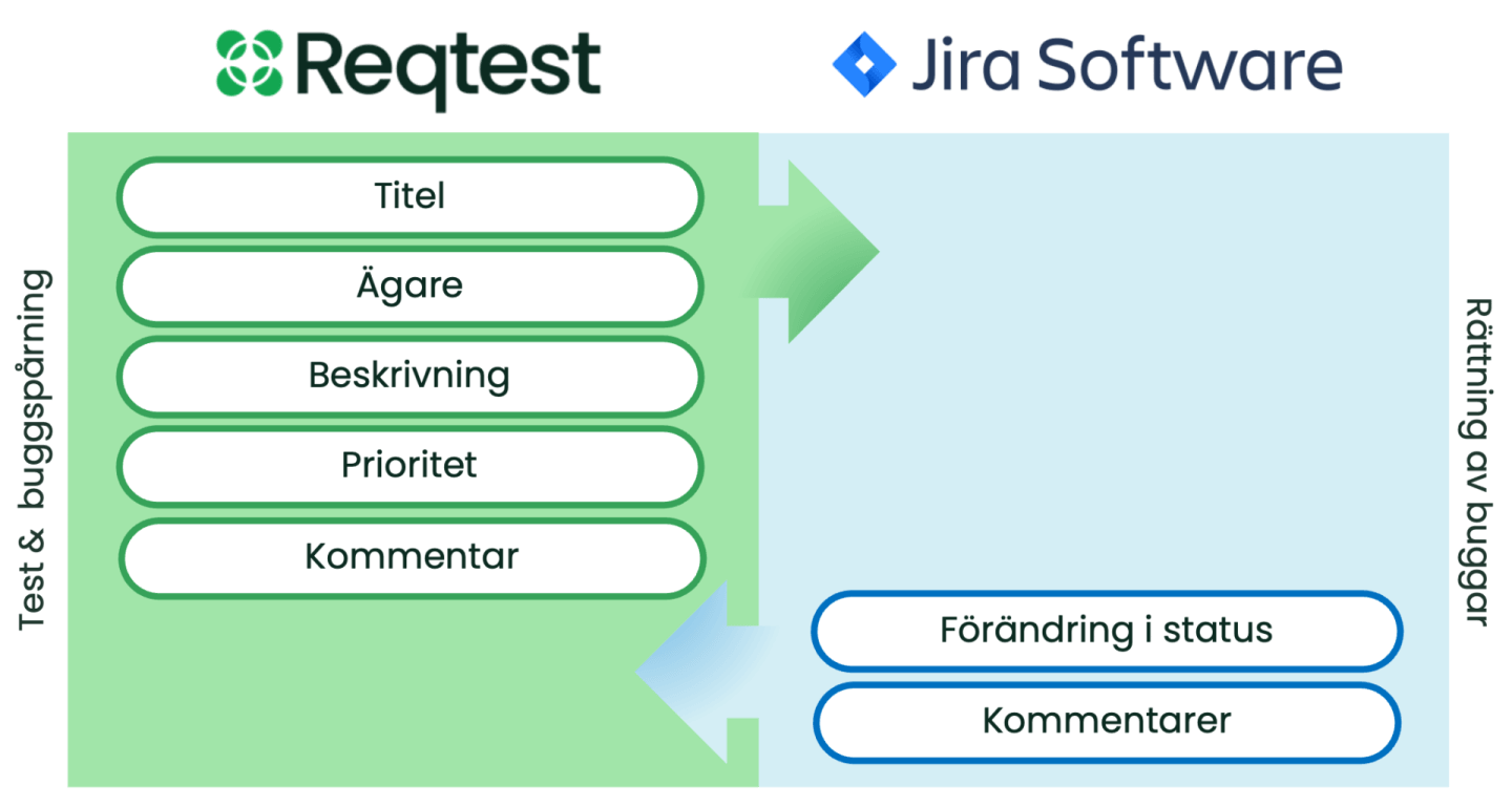 - När du rapporterar en bugg i Reqtest skapas automatiskt en ticket i Jira (eller valfritt verktyg)
