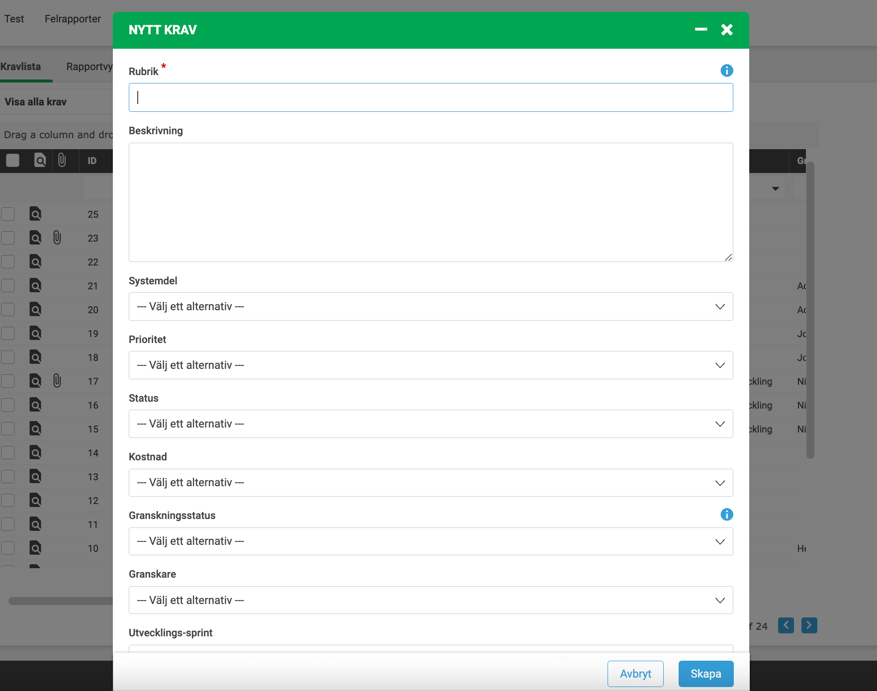 2. Skapa eller importera krav
