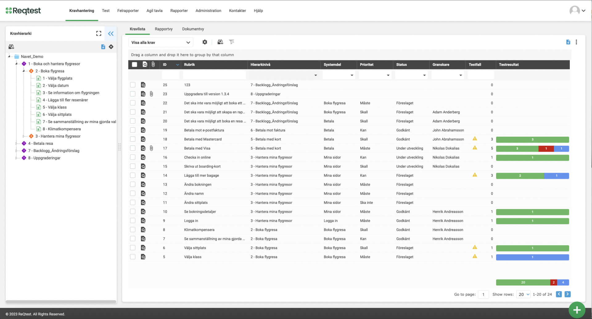 Kraven kan prioriteras och tilldelas till specifika användare eller team för en effektiv granskningsprocess.
