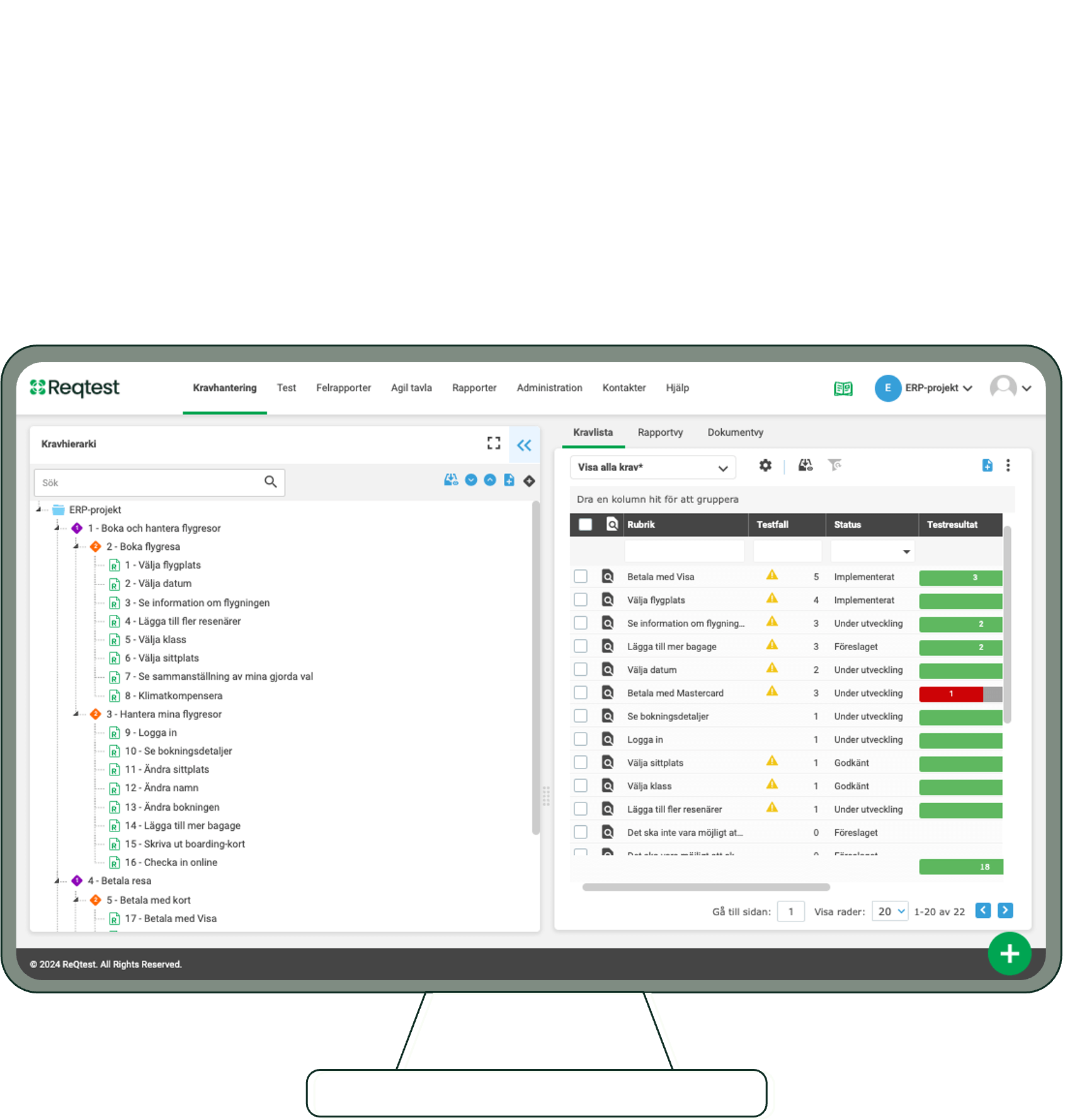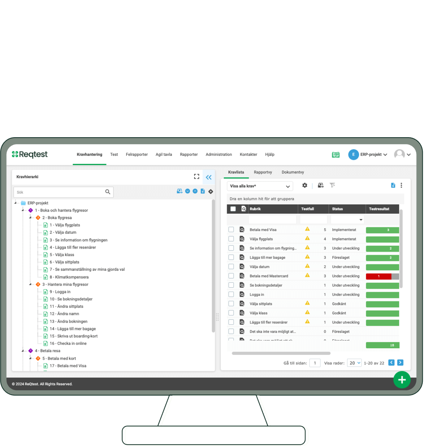 - Få kontroll över alla tester, krav och buggar i projektet