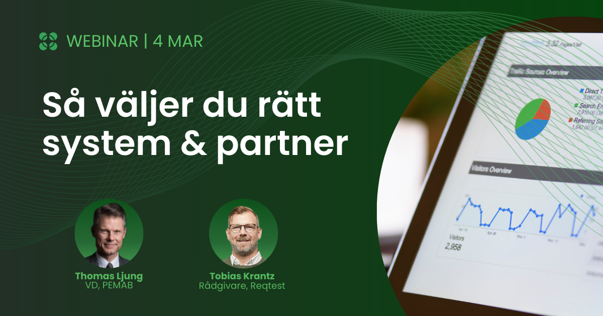 När system och implementationspartner ska väljas är det lätt att lockas av kända varumärken eller ett lågt pris. Men beslut som fattas på fel grunder kan kosta bolaget miljoner. I det här webbinariet får du lära dig hur du fattar rätt beslut baserat på strukturerade analyser snarare än magkänsla. Thomas Ljung delar sin checklista från över 30 års erfarenhet av komplexa systeminföranden i globala storbolag.