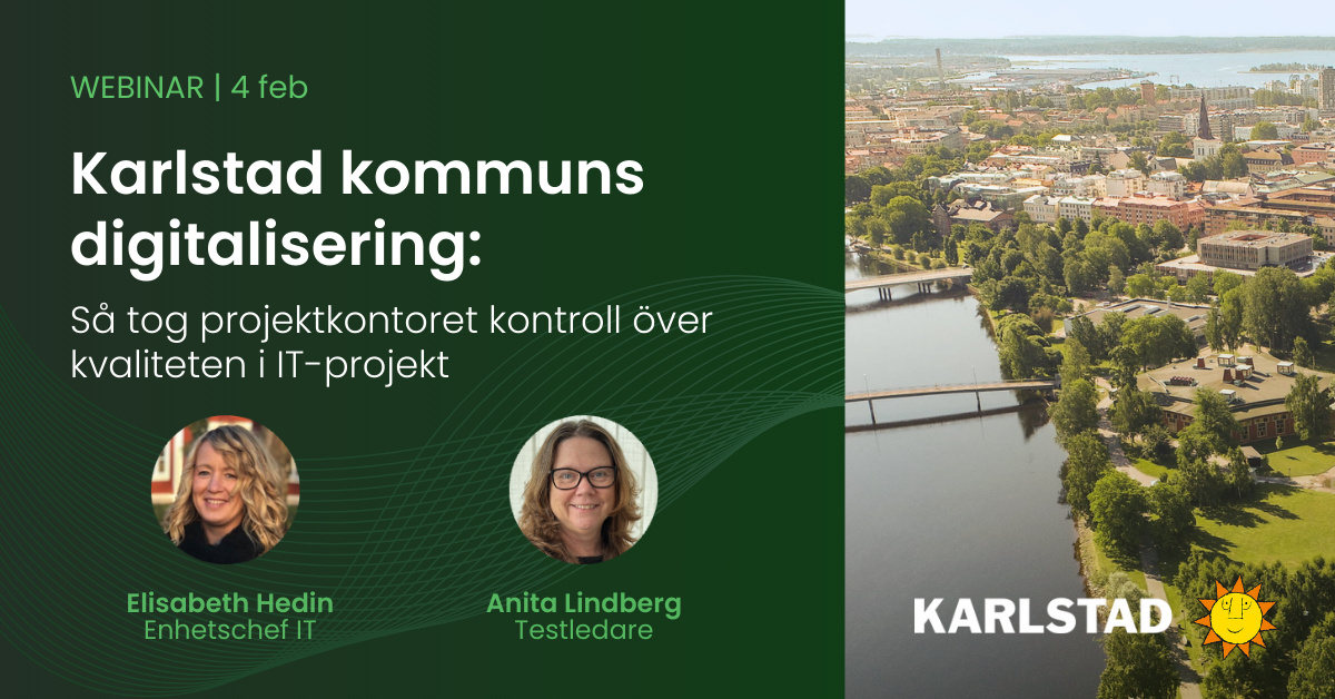 Offentlig sektor digitaliseras i snabb takt. Men hur säkerställer man kvalitet när IT-projekten blir fler och mer komplexa? I detta webbinarium intervjuar vi Elisabeth Hedin, enhetschef IT, och Anita Lindberg, testledare, om hur de tagit kontroll över kvaliteten och effektiviteten i sina IT-projekt.